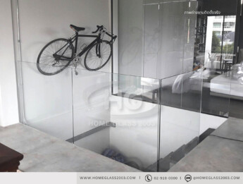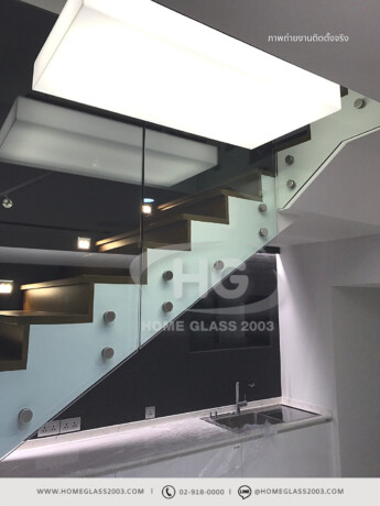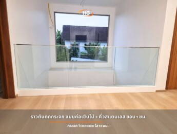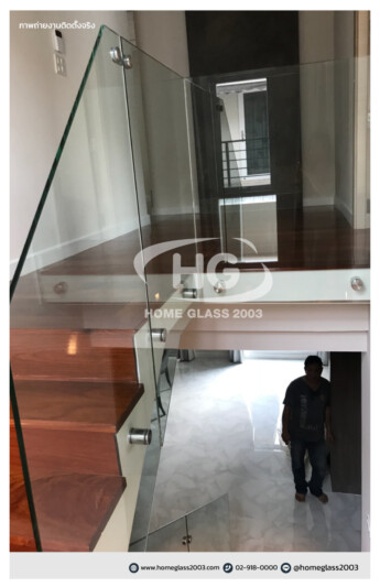 ลูกค้า : หน้างานเป็นบันไดปูน และอยากได้กระจกกั้นแบบเปลือยๆ ดูโล่งตาทำได้มั๊ยคะ?