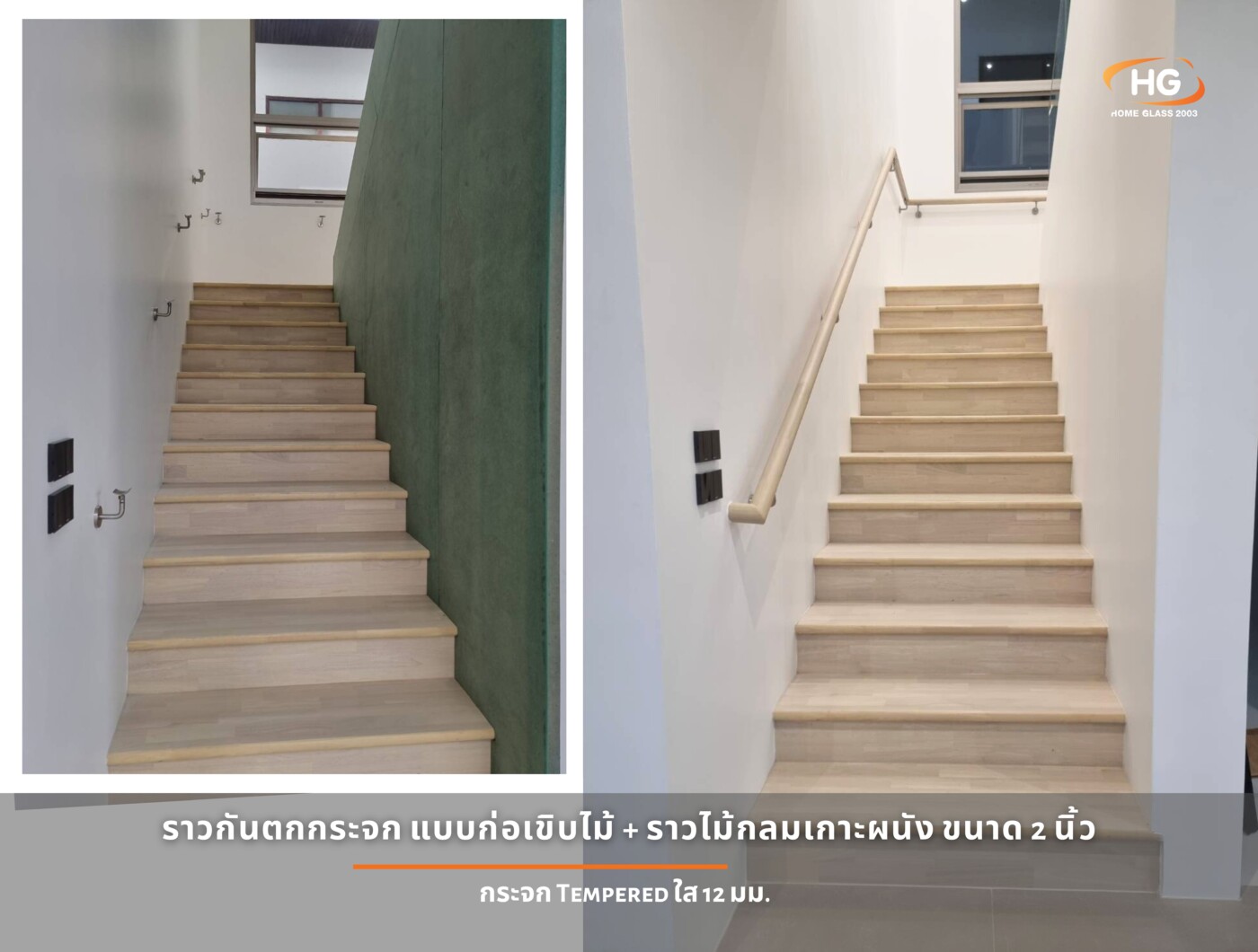 ราวบันไดก่อเขิบไม้ พร้อมซ่อนไฟ LED