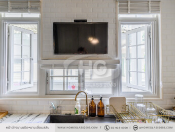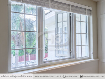 - หน้าต่างบานเปิดคู่ แบบไร้เสากลาง โปล่งโล่งตา