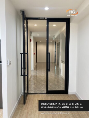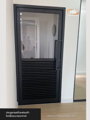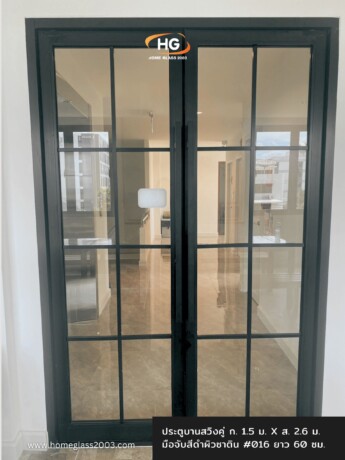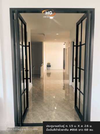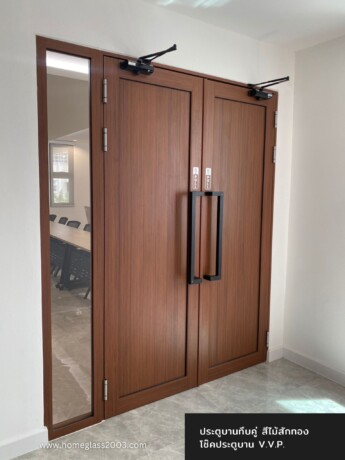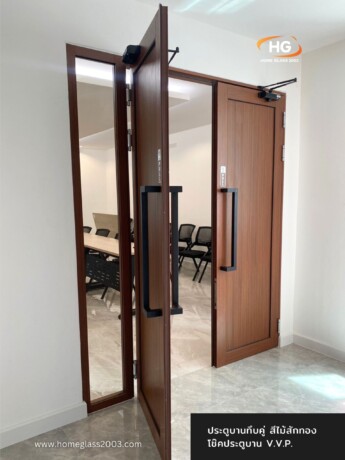 ประตูบานเปิดคู่ แผ่นอลูมิเนียมทึบ ลายไม้โอ๊คดำ W-01N – HG2003 (2)