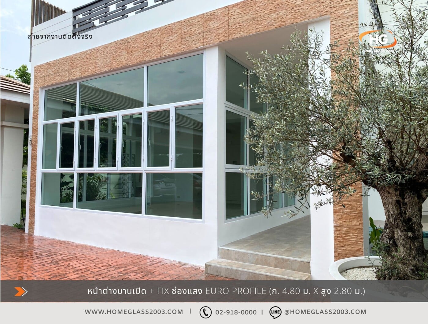 - หน้าต่างบานเปิดคู่ แบบไร้เสากลาง โปล่งโล่งตา