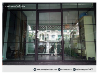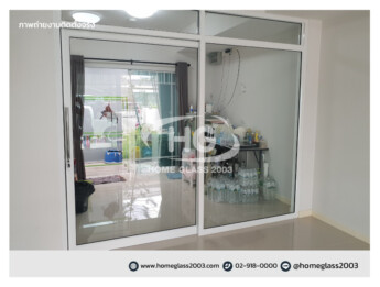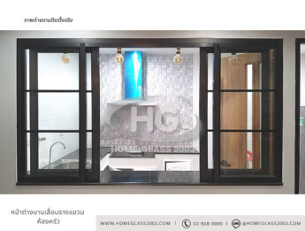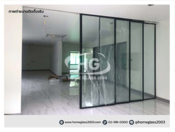 ประตูบานเลื่อนแขวนคู่กลาง + ช่องแสง และ บานติดตาย รุ่น standard
